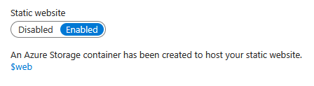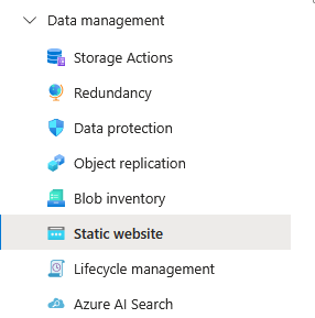With your storage account ready, look under Data Management for Static Website. It’ll be disabled. Enable it!